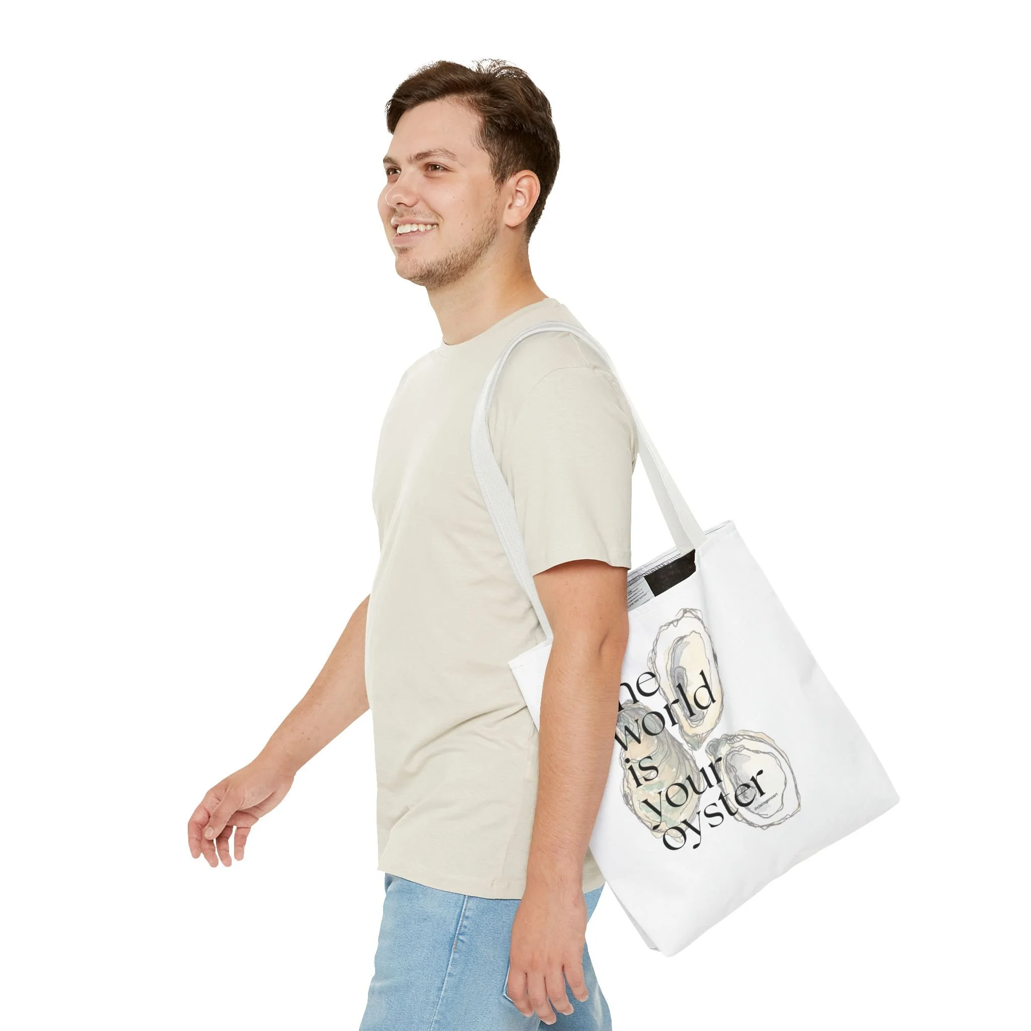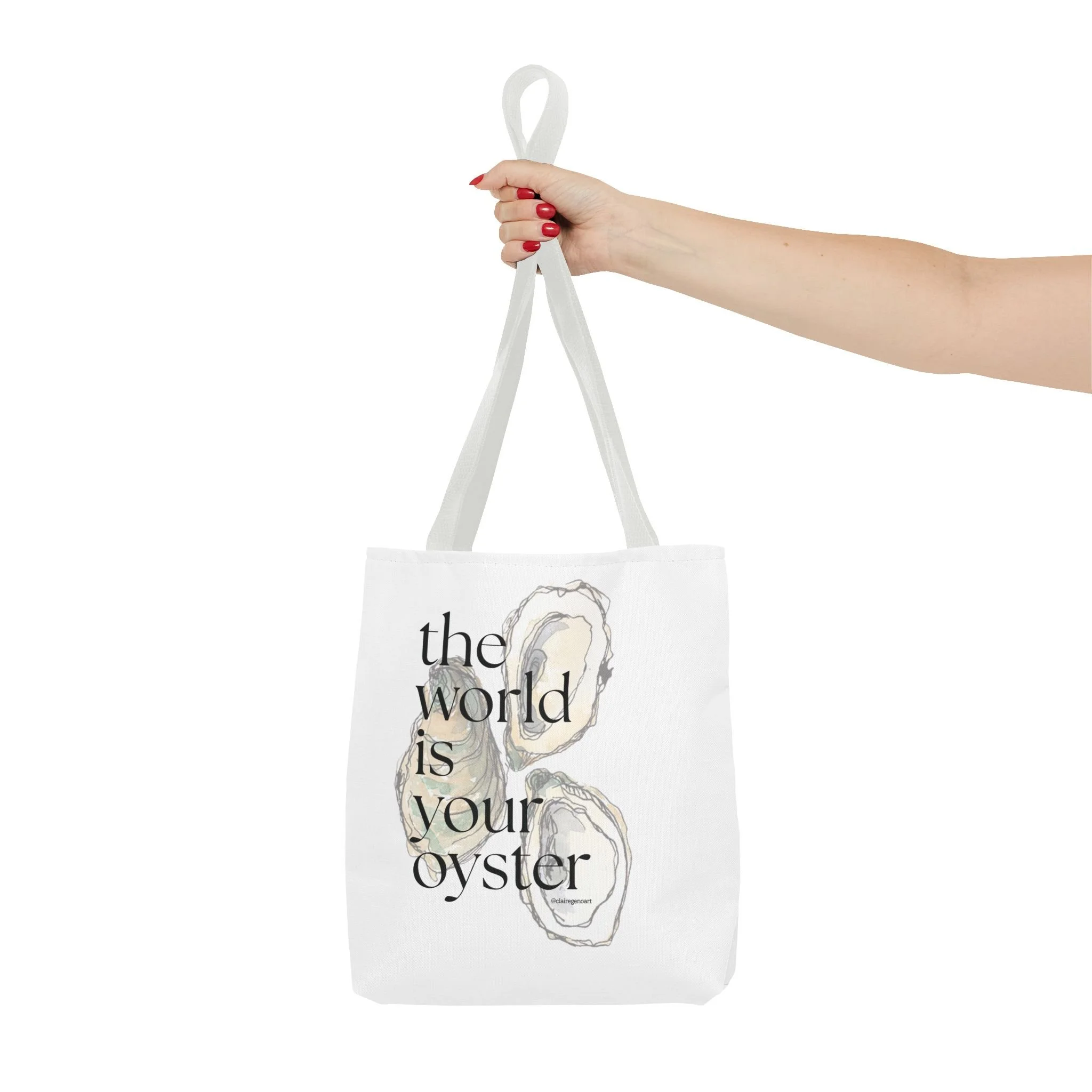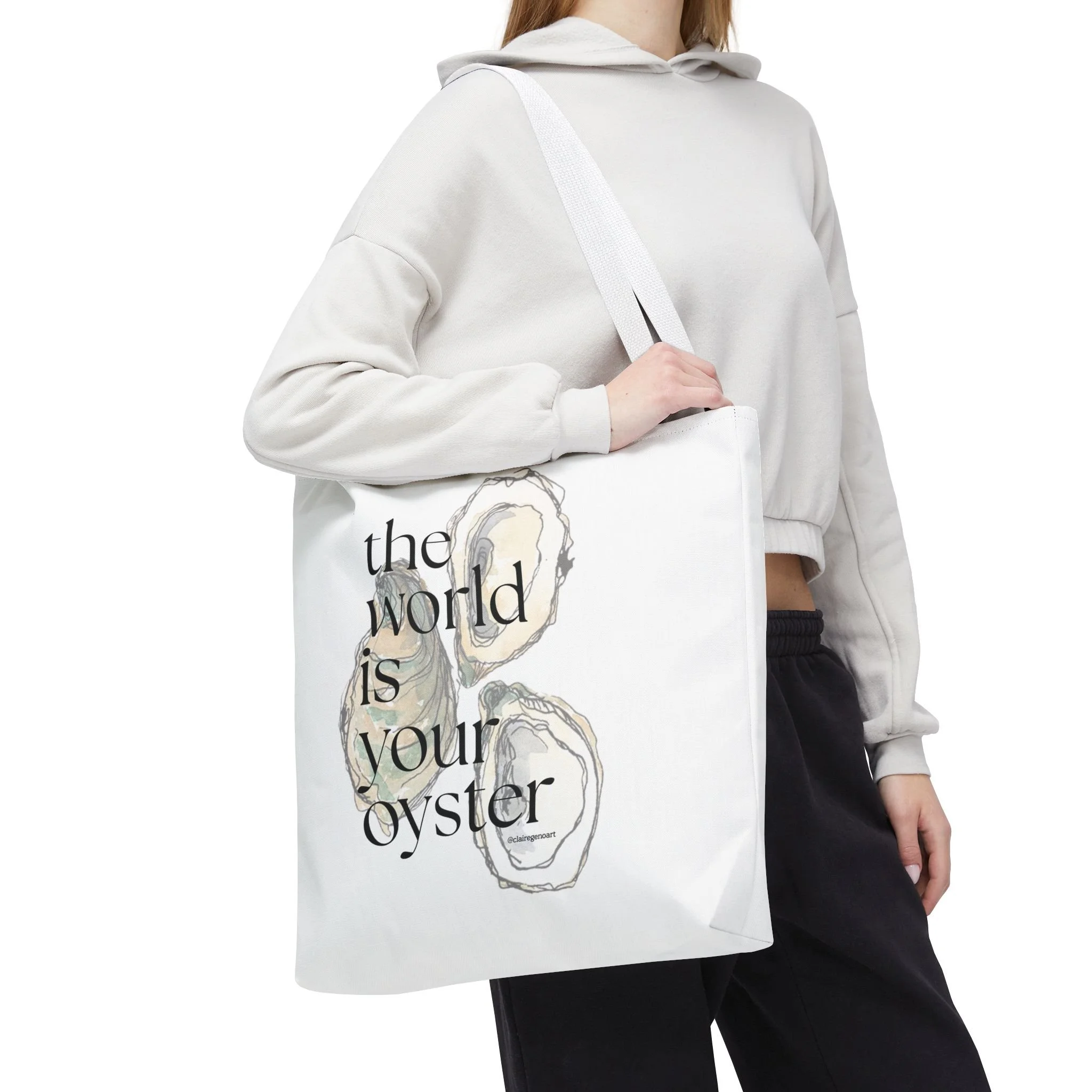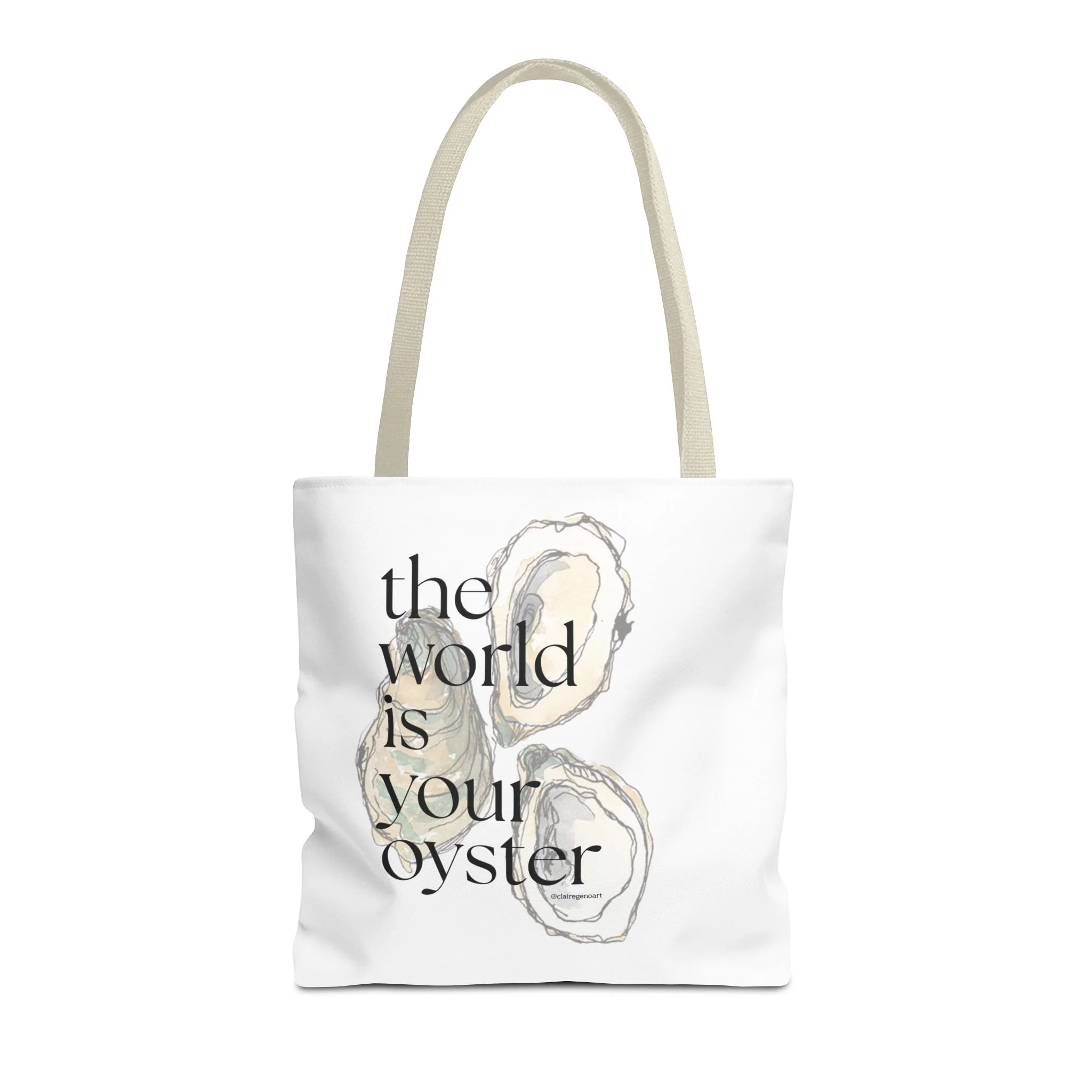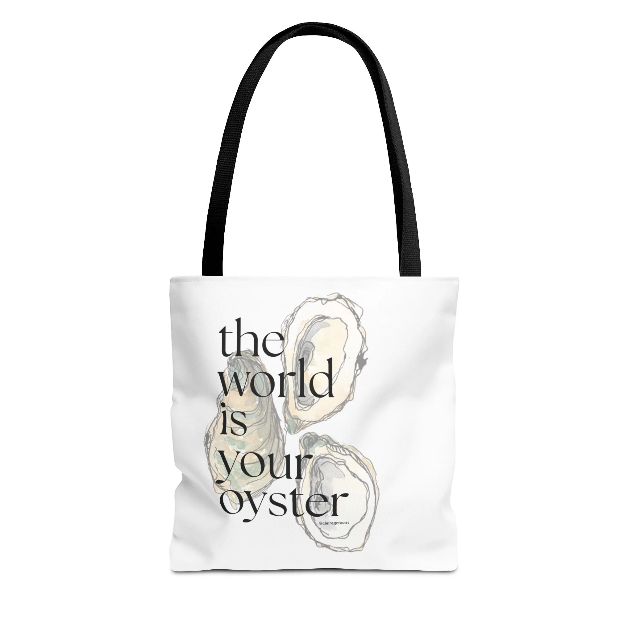 shop › The World is Your Oyster Tote Bag Image 1 of 7 Image 2 of 7 Image 3 of 7 Image 4 of 7 Image 5 of 7 Image 6 of 7 Image 7 of 7 The World is Your Oyster Tote Bag from $22.00 Claire Geno Art Size: Select Size 13" × 13'' 16" × 16'' 18" × 18'' Color: Select Color Black White Beige Add To Cart Added! Claire Geno Art